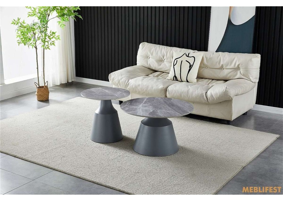 Моделі відзначаються міцною та стабільною конструкцією. Стільниці виготовлені з керамічної плити з ефектом натурального каменю та характерними прожилками, що робить кожен столик унікальним. Поверхня стійка до подряпин, механічних пошкоджень, впливу температур і вологи. Вона не вбирає запахи, не піддається утворенню цвілі та легко очищується, що забезпечує зручність у щоденному використанні.