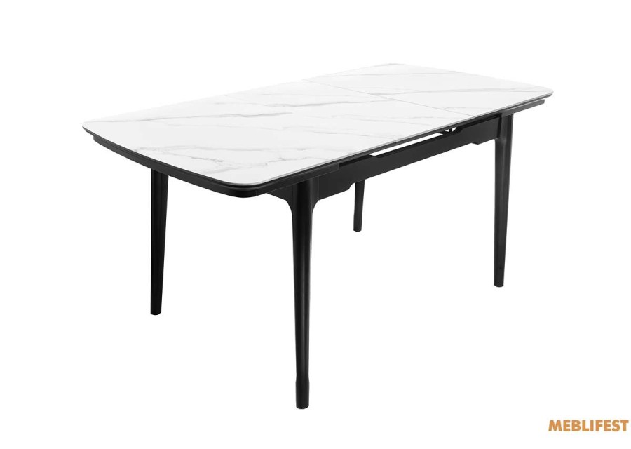 Розкладний обідній стіл Askold від виробника Bjorn — ідеальний вибір для поціновувачів сучасної естетики та функціональності. Завдяки елегантному дизайну він гармонійно впишеться в інтер’єр кухні, вітальні, а також стане ефектним елементом обідньої зони на заскленій терасі чи в заміському будинку. Модель поєднує стриманий зовнішній вигляд із надійною конструкцією, що робить її практичною для щоденного використання. Стільниця виготовлена з керамічної плити з виразними прожилками, які імітують текстуру натурального каменю. Завдяки унікальному малюнку кожен стіл має неповторний вигляд. Керамічна поверхня відзначається високою стійкістю до подряпин, зношування та перепадів температур, не боїться впливу хімічних засобів і легко очищується. Матеріал є гігієнічним, не вбирає рідини та не виділяє шкідливих речовин. Опори столу виконані з міцного пофарбованого металу, що забезпечує стабільність і довговічність конструкції. Ключовою перевагою моделі є розсувна стільниця, яка дозволяє збільшити довжину столу. Надійний металевий механізм трансформації працює плавно та розрахований на інтенсивну експлуатацію — понад 10 000 циклів розкладання, що гарантує зручність і надійність протягом тривалого часу.