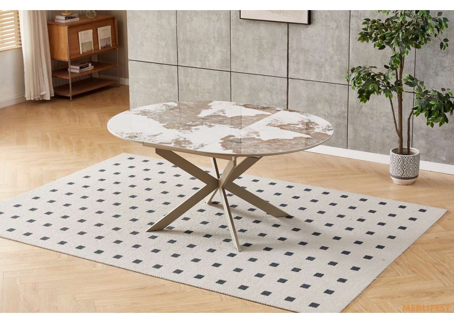 Обідній розкладний стіл Atlas-120R Beige Pandora Glossy