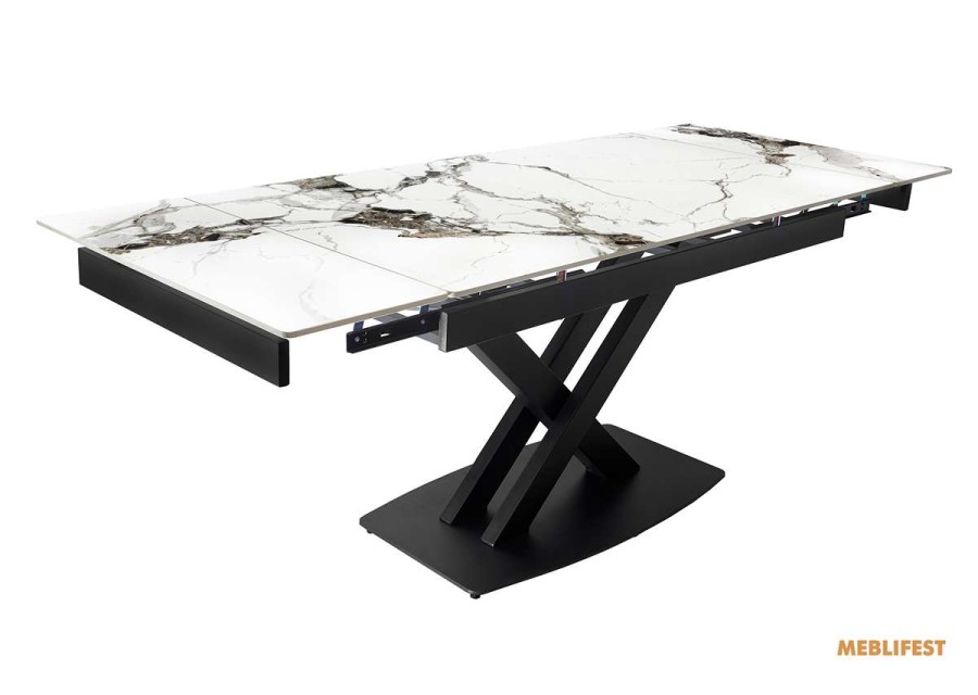 Розкладний обідній стіл Robert від виробника Bjorn — ідеальний вибір для поціновувачів сучасної естетики та функціональності. Завдяки елегантному дизайну він гармонійно впишеться в інтер’єр кухні, вітальні, а також стане ефектним елементом обідньої зони на заскленій терасі чи в заміському будинку. Модель поєднує стриманий зовнішній вигляд із надійною конструкцією, що робить її практичною для щоденного використання. Стільниця виготовлена з керамічної плити з виразними прожилками, які імітують текстуру натурального каменю. Завдяки унікальному малюнку кожен стіл має неповторний вигляд. Керамічна поверхня відзначається високою стійкістю до подряпин, зношування та перепадів температур, не боїться впливу хімічних засобів і легко очищується. Матеріал є гігієнічним, не вбирає рідини та не виділяє шкідливих речовин. Опори столу виконані з міцного пофарбованого металу, що забезпечує стабільність і довговічність конструкції. Ключовою перевагою моделі є розсувна стільниця, яка дозволяє збільшити довжину столу з 140 до 200 см. Надійний металевий механізм трансформації працює плавно та розрахований на інтенсивну експлуатацію — понад 10 000 циклів розкладання, що гарантує зручність і надійність протягом тривалого часу.